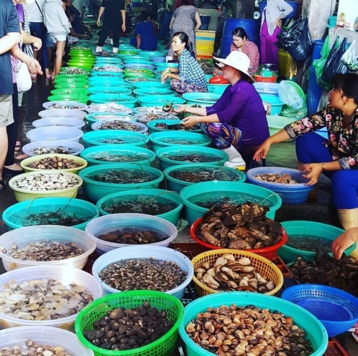 Để có một bữa tiệc hải sản đúng chất “”ngon – bổ – rẻ””, du khách không thể bỏ qua chợ Hàng Dương – khu chợ hải sản lớn nhất khu vực nằm sát bãi biển 30/4. Tại đây, bạn có thể tự tay lựa chọn những con tôm, con mực còn đang bơi lội và yêu cầu chế biến tại chỗ. Không gian thưởng thức có thể là ngay tại sạp hoặc mang ra những chiếc chòi lá ven biển để vừa ăn vừa đón gió. Đây chính là trải nghiệm ẩm thực dân dã nhưng đậm chất “”vạn chài”” mà bất cứ ai khi đến với Cần Giờ cũng đều muốn một lần nếm trải.