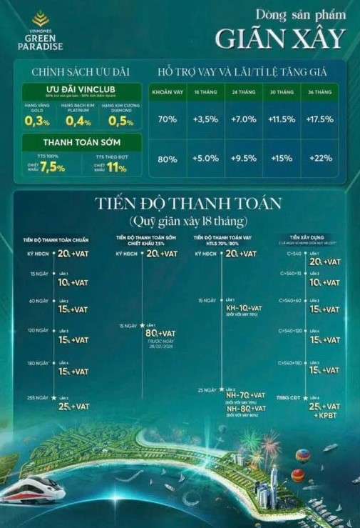 Vingroup nổi tiếng với việc đưa ra các giải pháp tài chính linh hoạt, giúp khách hàng dễ dàng tiếp cận sản phẩm cao cấp mà không quá áp lực về dòng vốn ban đầu. Kinh nghiệm mua nhà tại Vinhomes Green Paradise hiệu quả là bạn cần so sánh kỹ các phương thức thanh toán. Thông thường sẽ có ba lựa chọn chính: thanh toán theo tiến độ bằng vốn tự có, thanh toán sớm để nhận chiết khấu cao, và vay vốn ngân hàng được chủ đầu tư hỗ trợ lãi suất 0% trong một thời gian nhất định.