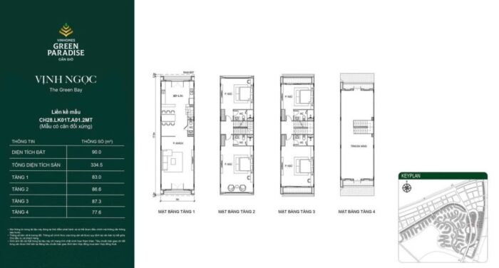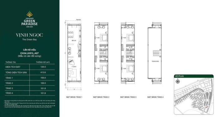Nhà phố tại đây có diện tích phổ biến từ 90m2 – 125m2, xây dựng 4 tầng với mặt tiền rộng từ 5-7m. Layout tầng 1 được thiết kế linh hoạt cho phép gia chủ kinh doanh hoặc làm gara ô tô, các tầng trên là không gian sinh hoạt ấm cúng với ban công rộng mở.