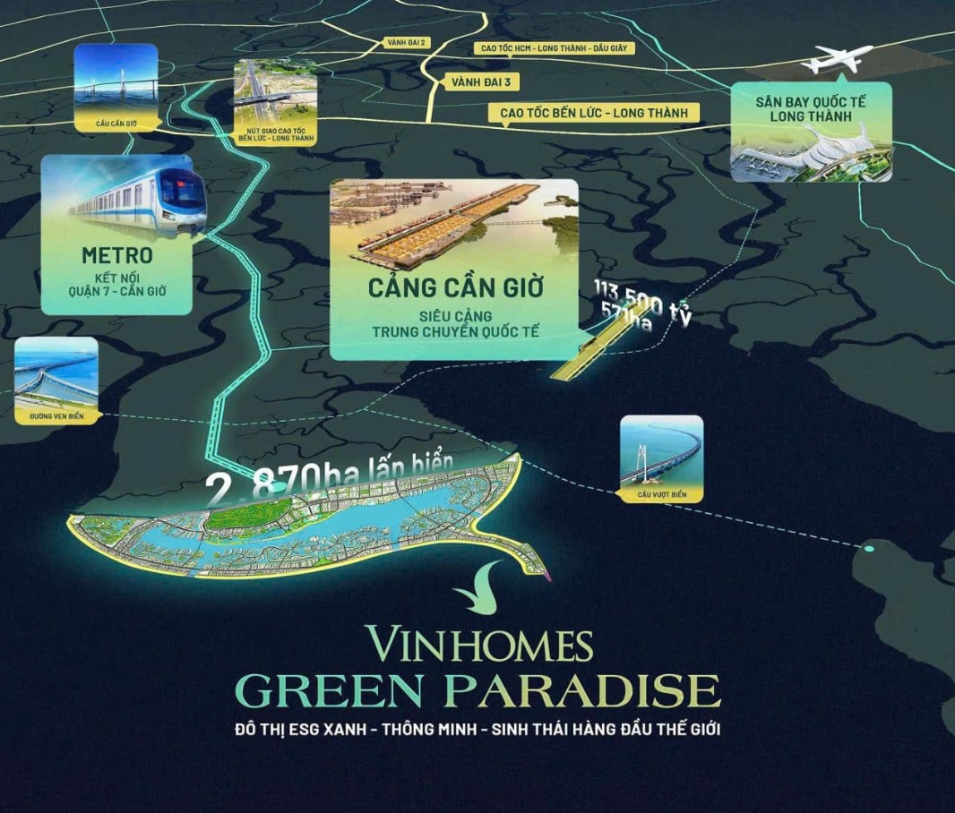 Giá trị của bất động sản Vịnh Ngọc gắn liền với tiến độ của các công trình hạ tầng trọng điểm quốc gia. Quan trọng nhất chính là Cầu Cần Giờ, dự kiến khởi công vào năm 2026. Khi cây cầu này hoàn thành, thời gian di chuyển từ Vịnh Ngọc về Quận 7 hay Quận 1 sẽ giảm xuống chỉ còn khoảng 40-50 phút, xóa bỏ rào cản về phà Bình Khánh hiện tại. Thêm vào đó, dự án Cảng trung chuyển quốc tế Cần Giờ và tuyến cao tốc Bến Lức – Long Thành khi đi vào vận hành sẽ biến Vịnh Ngọc thành tâm điểm logistics và thương mại của vùng duyên hải phía Nam.